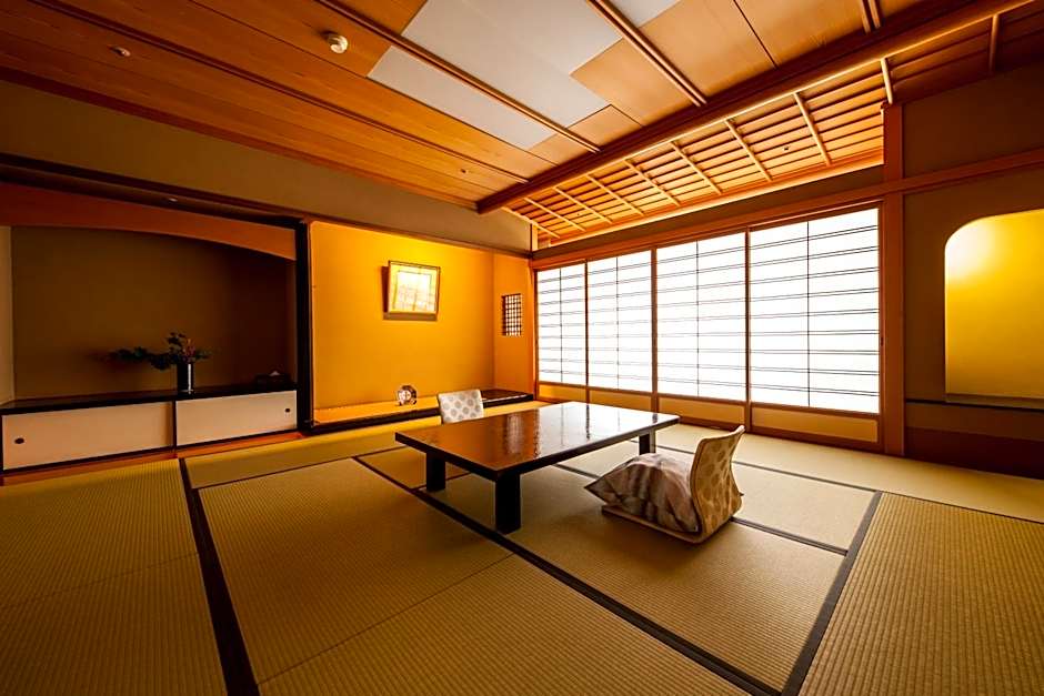 The quadruple room includes a private bathroom, well-fitted with a bath, a shower, a bidet, a hairdryer and slippers. The quadruple room features tatami floors, a seating area with a TV, air conditioning, a safe deposit box as well as garden views. The unit offers 2 beds and 4 futons.